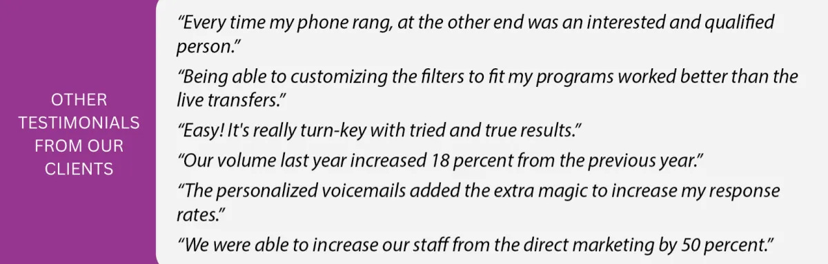 Over the last 17+ Years we have maintained an A+ Rating with the Better Business Bureau while helping over 1,200 Real Estate & Mortgage Companies grow and scale. Our strategies have led to billions of dollars in closings.